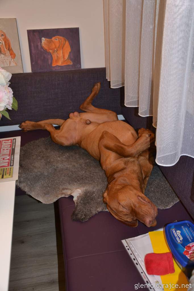 Tak jsme se konečně trochu oklepali z náročného víkendu a můžeme hodnotit, co jsme všechno zažili. Čekaly nás napínavé chvilky. Poprvé jsme vyrazili na výstavní klání do Prahy Letňan. A nebylo v tom jen předvádění v kruhu, ale i důležitý životní krok – výběr do chovu. Celým časem nás doprovázeli Katka a Karel Vadlejchovi, kteří s námi byli celou dobu na výstavišti a se svojí pohostinností nám poskytli pohodlí jejich domova k přespání. To bylo pro mě asi to nejlepší, protože jsem si mohl hrát s taťkou Glenem a pošťuchovat se se strejčkem Argentem. Nejoslnivější ale byly lavice, gauče a postele, na kterých jsem se mohl povalovat a kterých si doma jen tak neužiju.